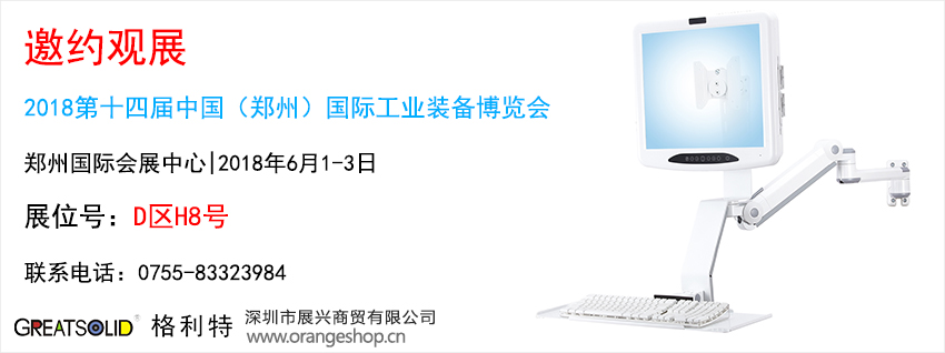 深圳市展兴商贸有限公司(www.orangeshop.cn)将参加2018年6月1-3日在中国郑州国际会展中心举办的2018第十四届中国(郑州)国际工业装备博览会,届时展兴将以崭新的公司形象、优质的支架产品、专业的技术知识、热忱的服务态度来迎接新老客户的莅临指导,您的莅临是对我们最大的支持,谢谢!