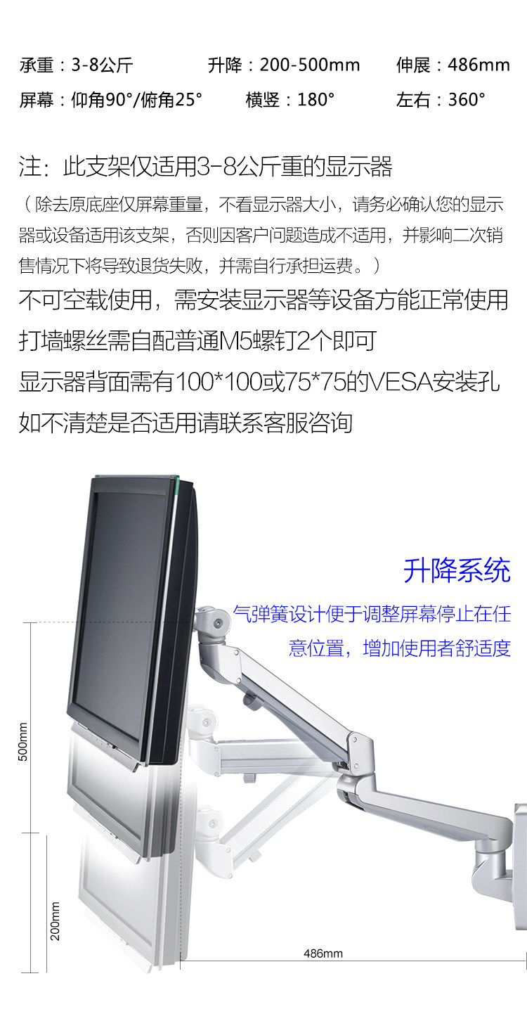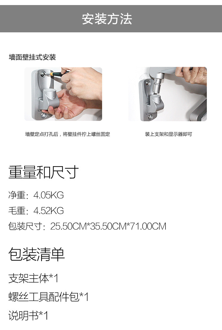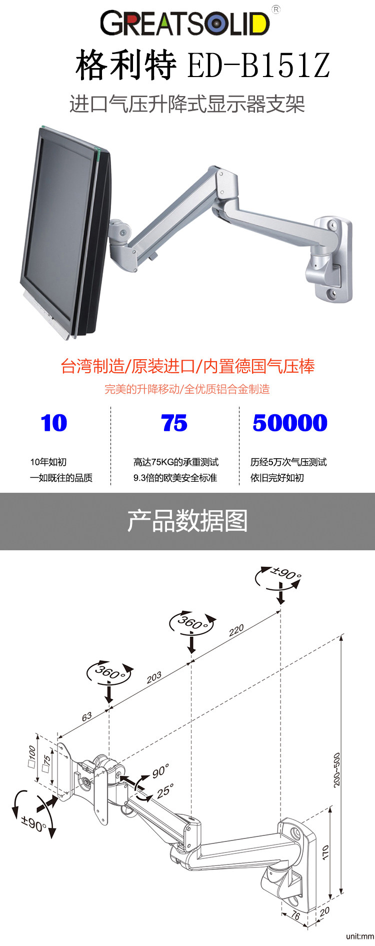 Greatsolid 格利特 ED-B151Z 中国台湾原厂 显示器壁挂支架高低升降