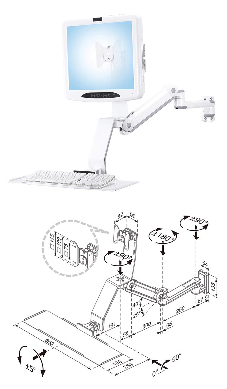 格利特HM-A5625 电脑显示器键盘鼠标一体支架万向气压升降