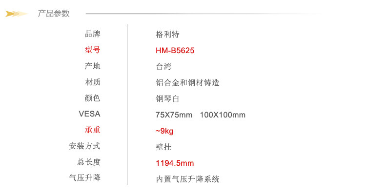 格利特HM-B5625台湾进口电脑显示器支架万向气压升降键盘LCD挂架