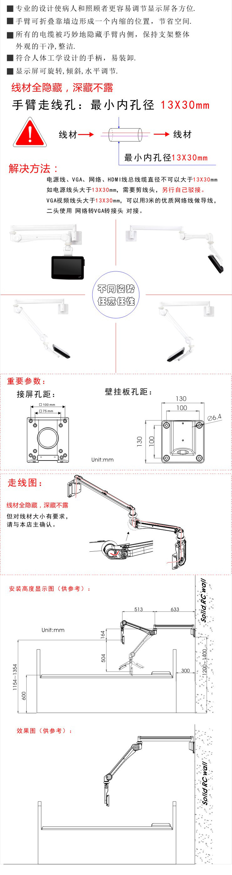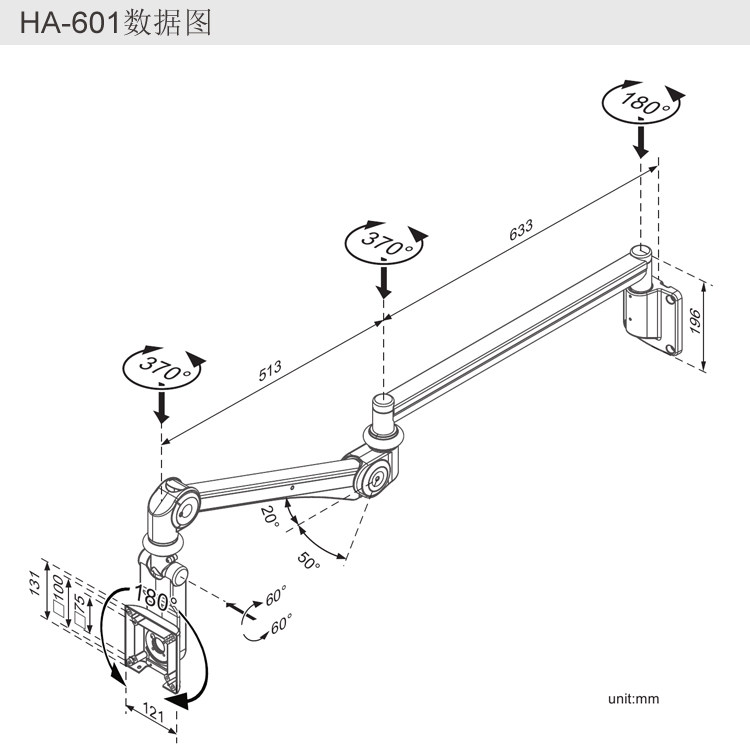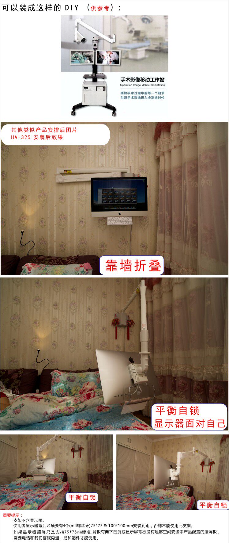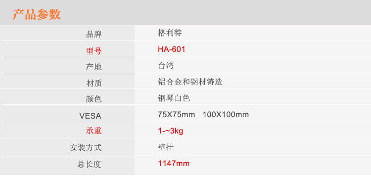 格利特HA-601进口壁挂显示器支架气压升降万向旋转移动医用支架