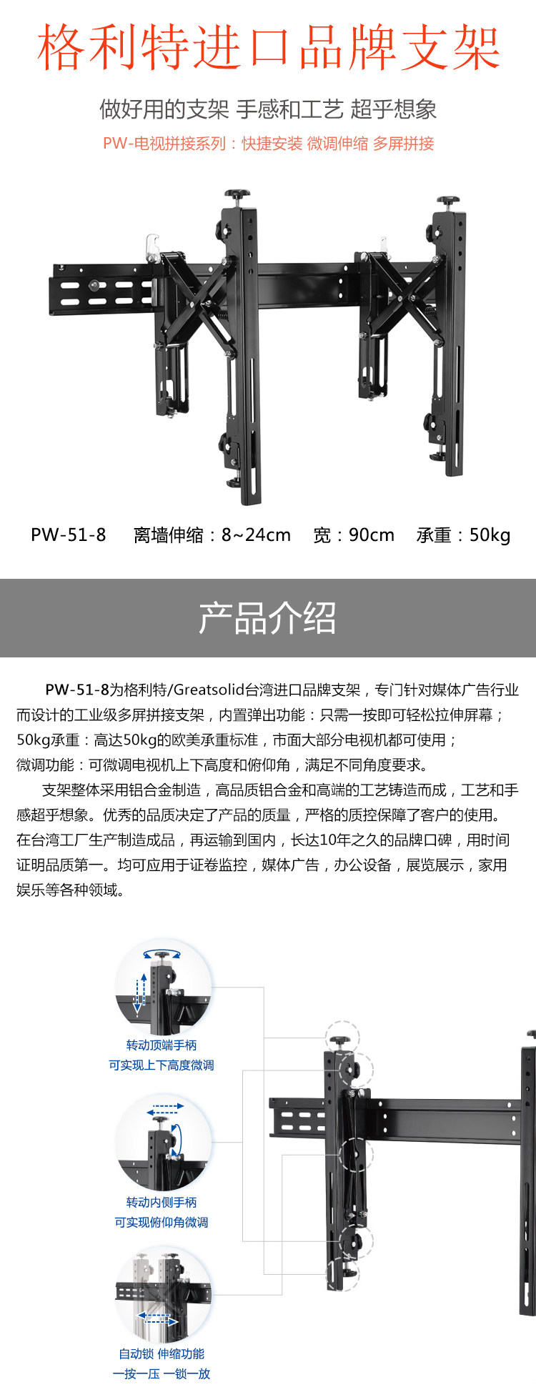 Greatsolid格利特PW-51-8拼接屏支架电视挂架