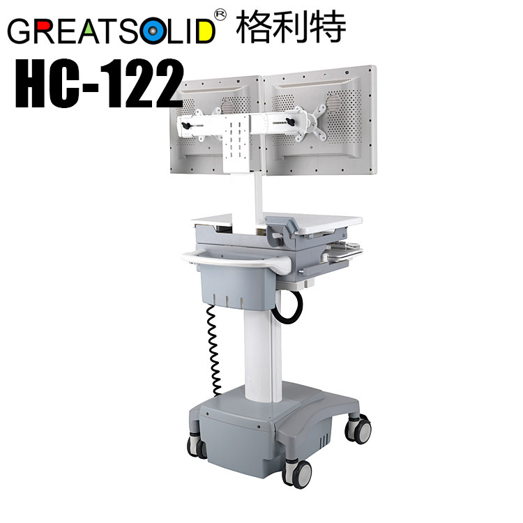 格利特 HC系列电脑双屏显示器支架推车 电脑移动医用推车 医疗推车/电脑推车 HC-121/HC-101,用于医疗领域等其他领域,方便医疗工作者工作使用,具有多关节多角度和移动范围偏转变换,本产品利用人体工学原理制造,体现人性化的办公模式。