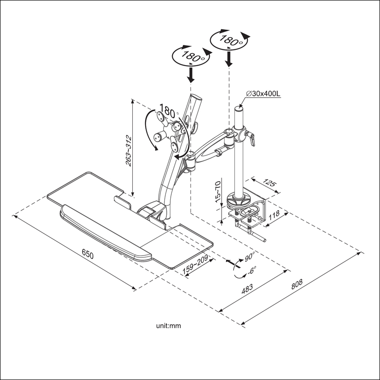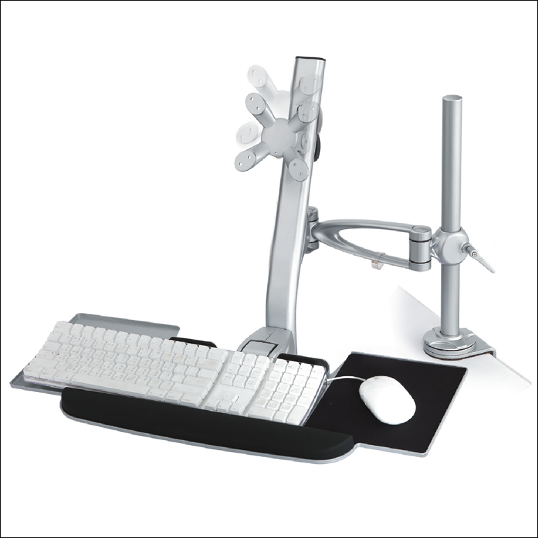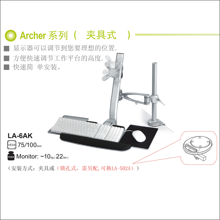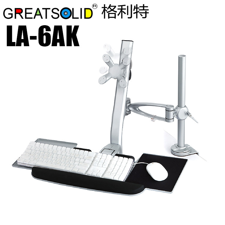 格利特 夹具式鼠标键盘一体显示器支架 LA-6AK 为显示器一体支架,用于个人办公,金融监控,工厂车间,产品展示,医疗设备,特殊作业等领域,具有多关节多角度和移动范围偏转变换,本产品利用人体工学原理制造,体现人性化的办公模式。