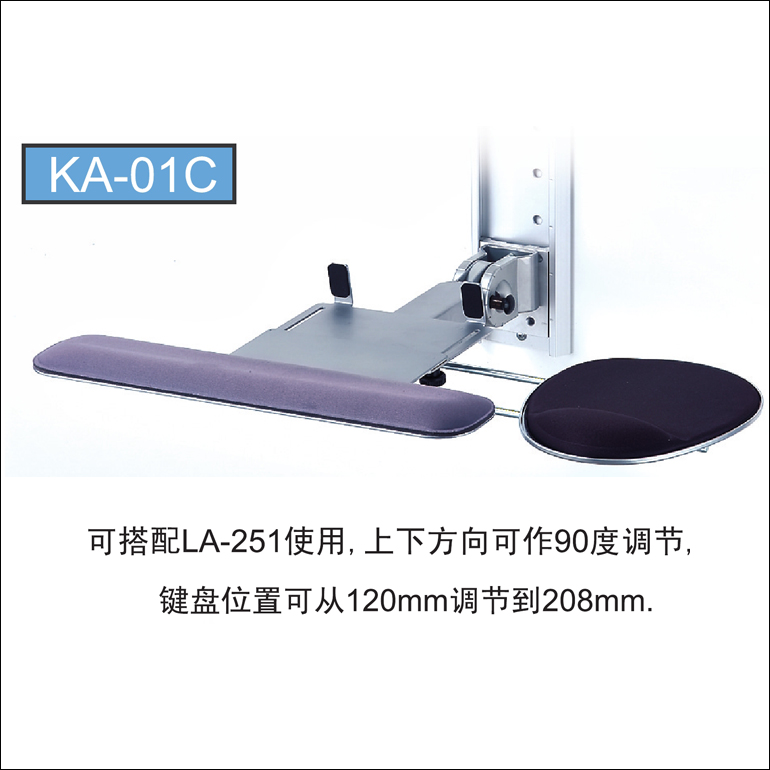 格利特 KA系列键盘鼠标支架 KA-01C 轨道式 可移动旋转键盘鼠标支架配件,可用于个人办公,金融监控,工厂车间,产品展示,医疗设备,特殊作业等领域,具有多关节多角度和移动范围偏转变换,本产品利用人体工学原理制造,体现人性化的办公模式。