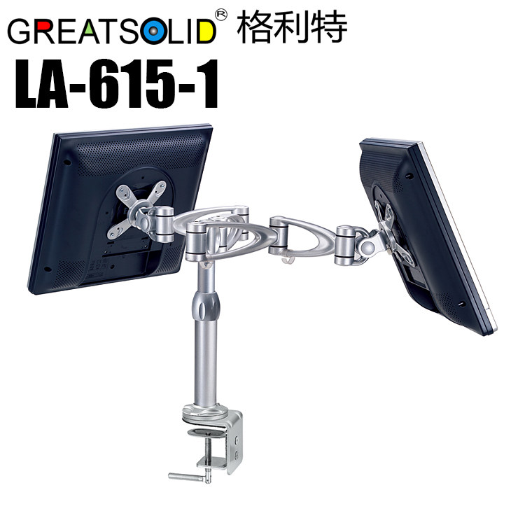 格利特 气压夹具式双屏显示器支架 LA-615-1 双屏支架 电脑双屏显示器支架,用于个人办公,金融监控,工厂车间,产品展示,医疗设备,特殊作业等领域,具有多关节多角度和移动范围偏转变换,本产品利用人体工学原理制造,体现人性化的办公模式