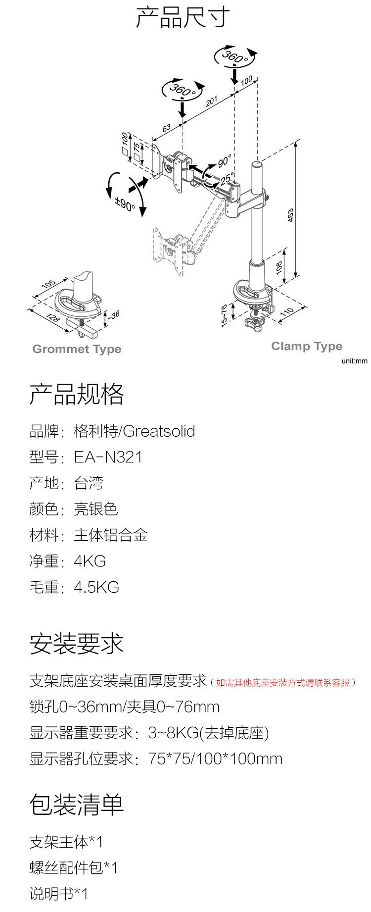 新品上市!Greatsolid格利特EA-N321显示器支架