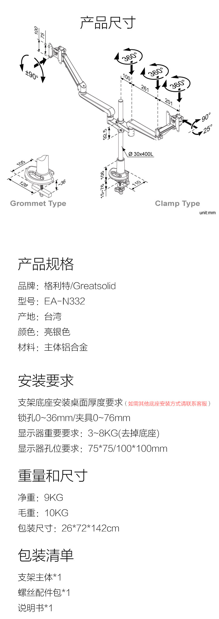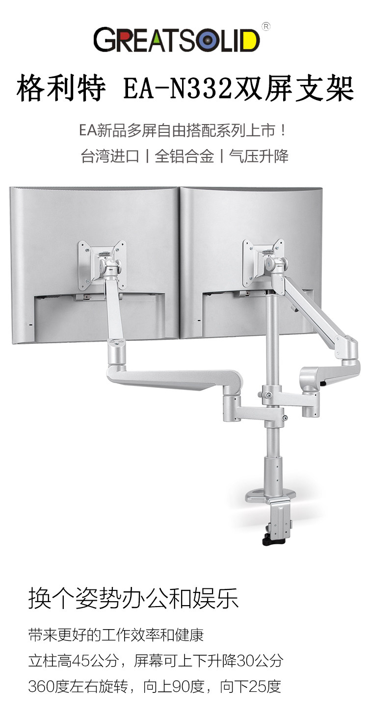 新品上市!Greatsolid格利特EA-N332双屏显示器支架