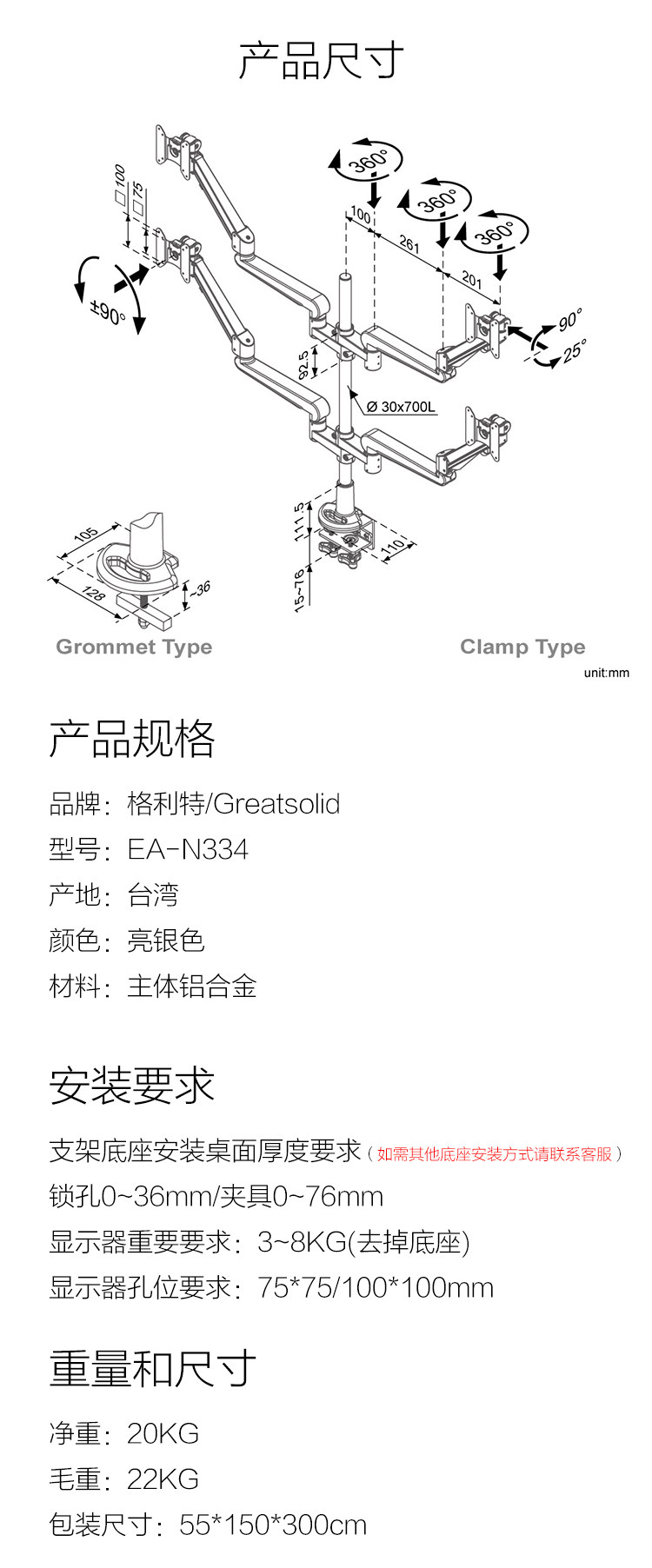 新品上市!Greatsolid格利特EA-N334四屏显示器支架