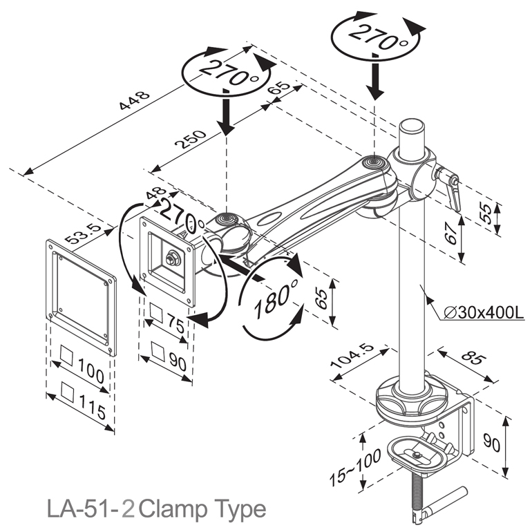 安装方式:夹具式,可夹15-100mm厚度桌面